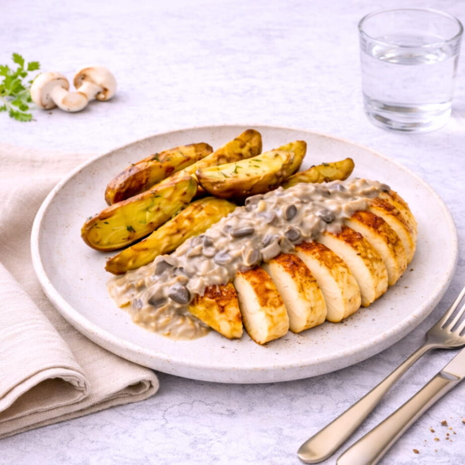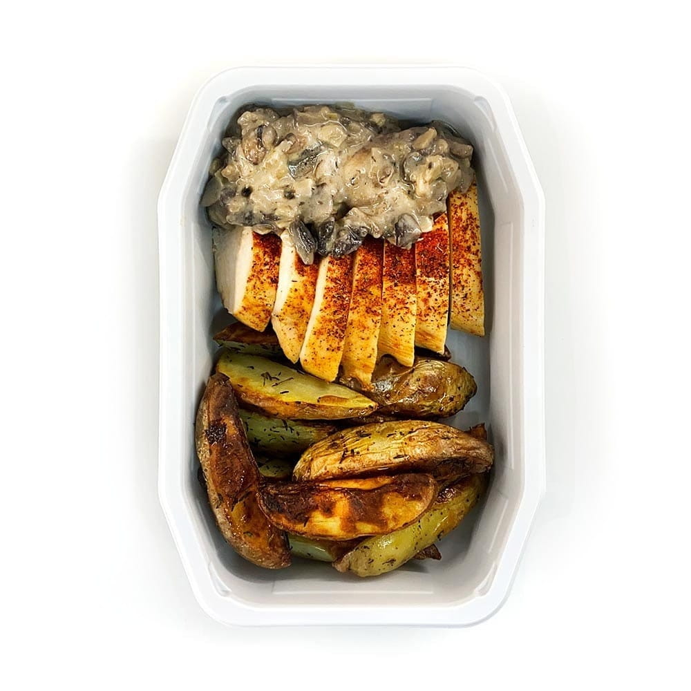 Svampsåskyckling med potatisklyftor